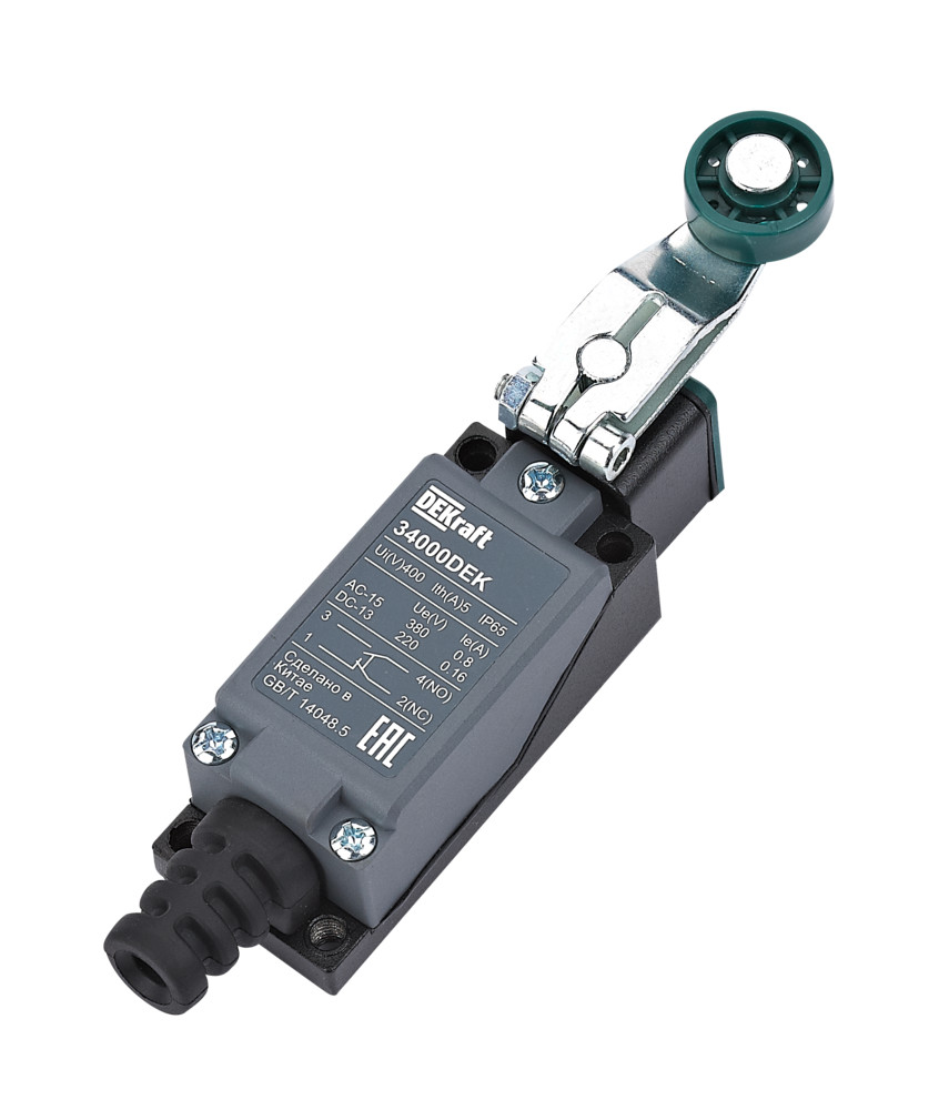 Dekraft 34000DEK Концевой вык. метал. 1НО1НЗ Роликовый рычаг из термопласта (34000DEK): цена, характеристики, отзывы, фото, инструкция - купить Концевой выключатель/переключатель 34000DEK в Москве оптом