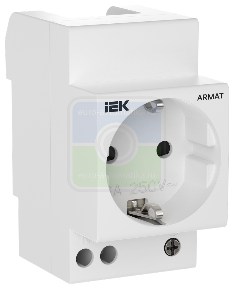 Розетка на DIN-рейку серии ARMAT предназначена для применения в сетях переменного тока напряжением до 250 В и служит для подключения переносных светильников, электроинструмента малой мощности, блоков питания и другого оборудования.
