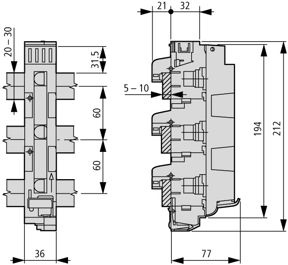Токовая шина с расстоянием 60 мм | ||