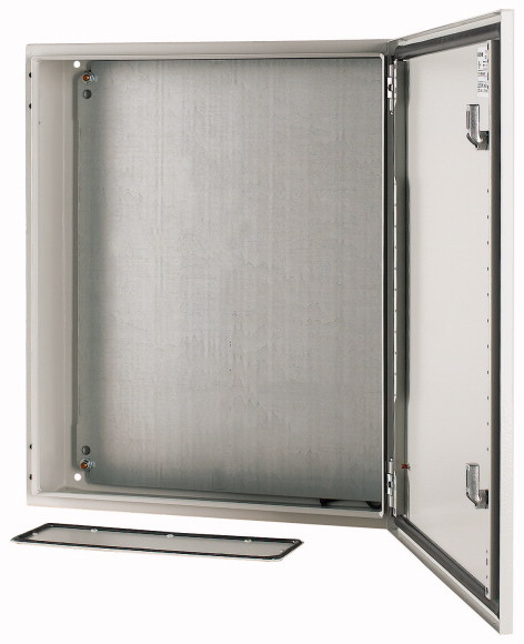 Полностью вспененное полиуретанове уплотнение Impact resistance category IK09 to EN 62262. Монтажная панель из листовой стали Опорная пластина со вспененным уплотнением. Однодверный, упор двери справа, угол открывания двери 120° Шарнирные штифты дверей с технологией Quick-Change. Стандартизованная система запирания с зажимным приспособлением. Порошковое покрытие RAL 7035 внутри и снаружи |