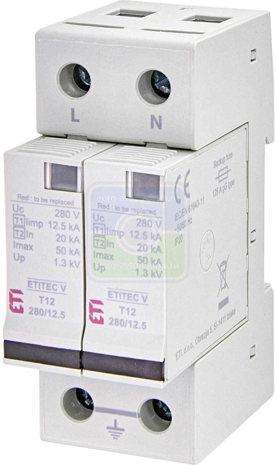 | Iimp (10/350) импульсный ток (kA): | 12.5 |