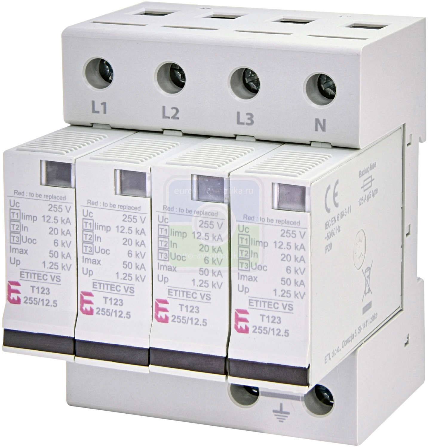 | Iimp (10/350) импульсный ток (kA): | 12.5 |
