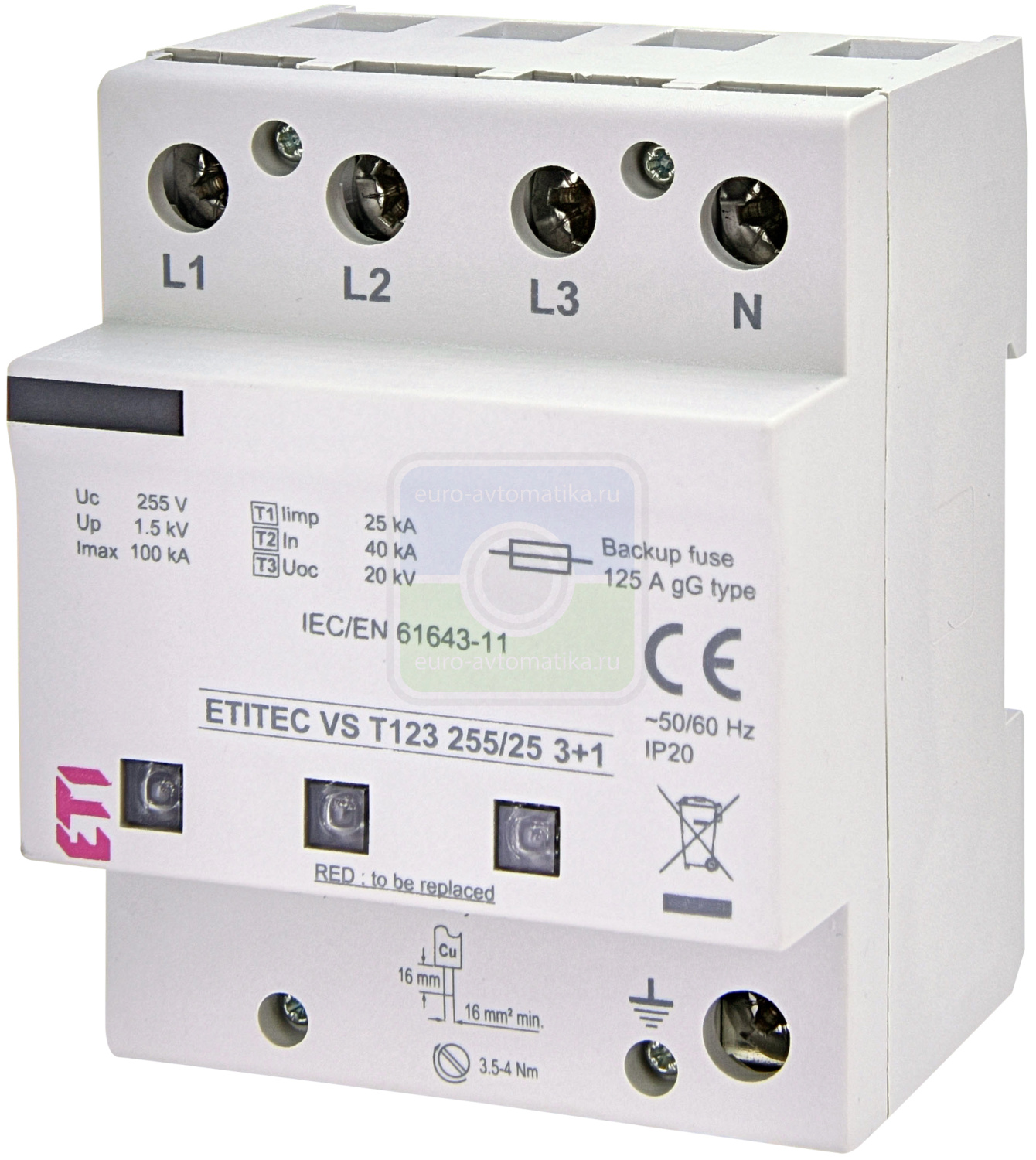 | Iimp (10/350) импульсный ток (kA): | 25 |