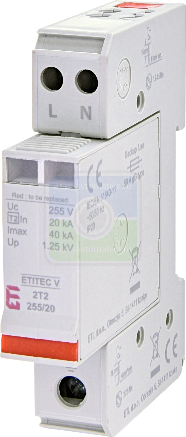 | Max. ток разряда Imax (8/20) kA: | 40 |