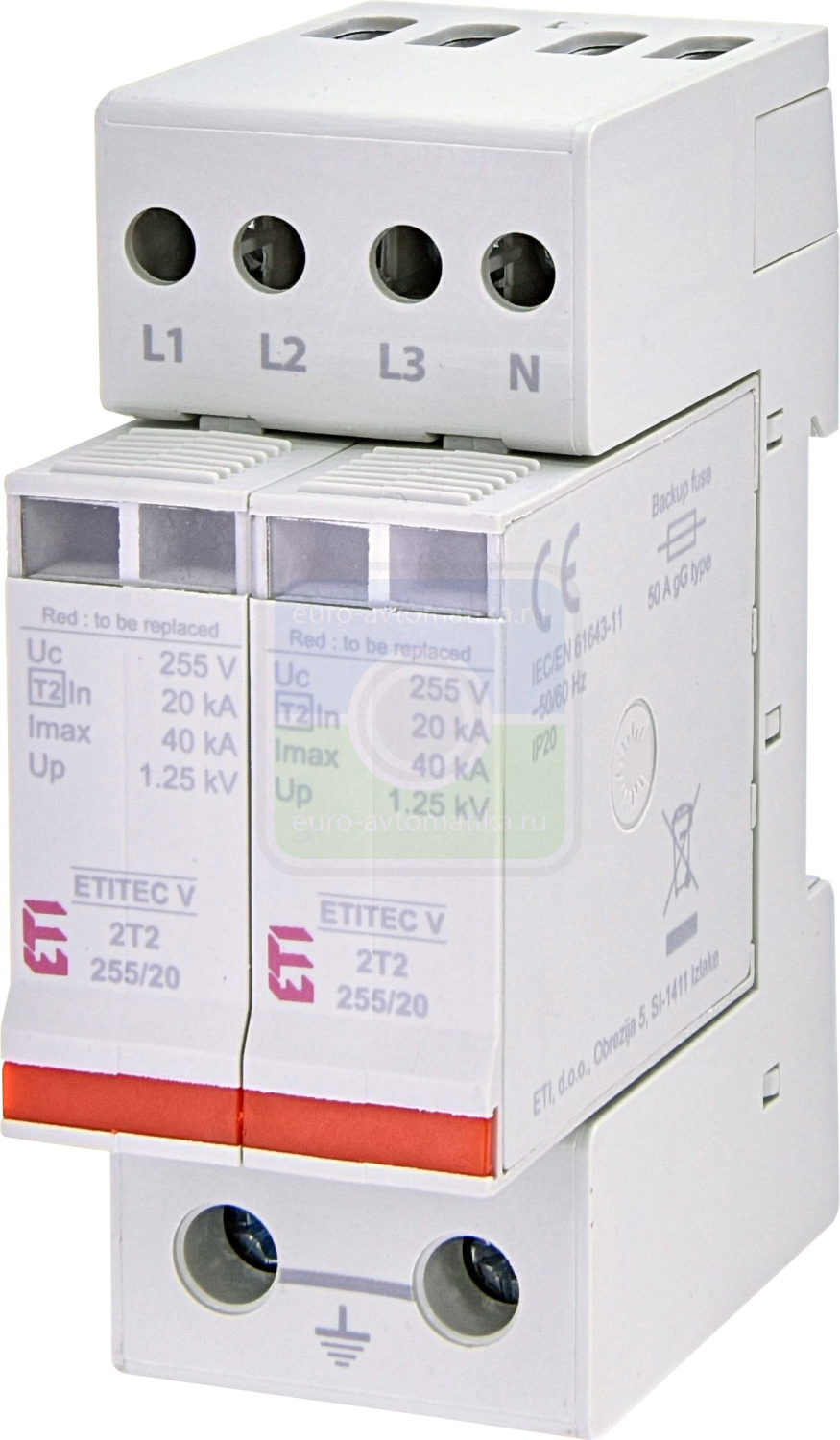ETI 2442943 Ограничитель перенапряжения ETITEC V 2T2 255/20 (4+0) (2442943): цена, характеристики, отзывы, фото, инструкция - купить Грозозащита 2442943 в Москве оптом