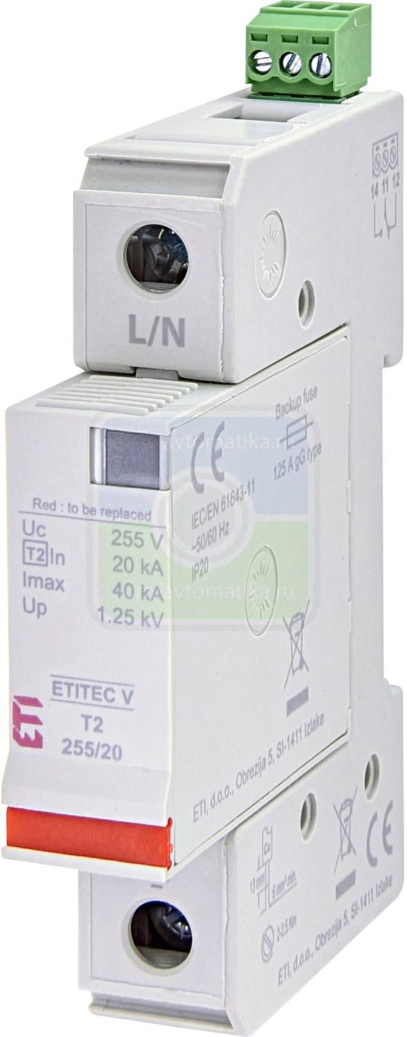 | Max. ток разряда Imax (8/20) kA: | 40 |