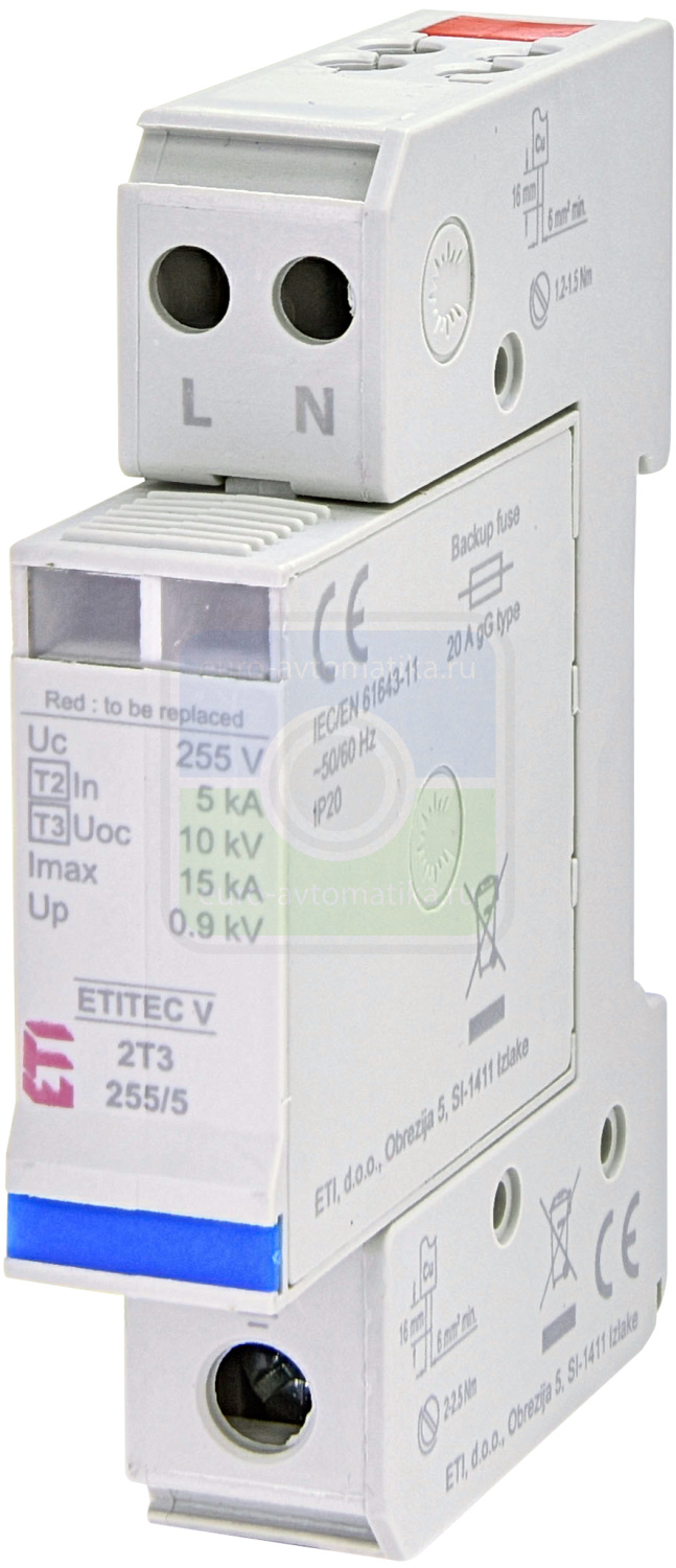 | Max. ток разряда Imax (8/20) kA: | 15 |