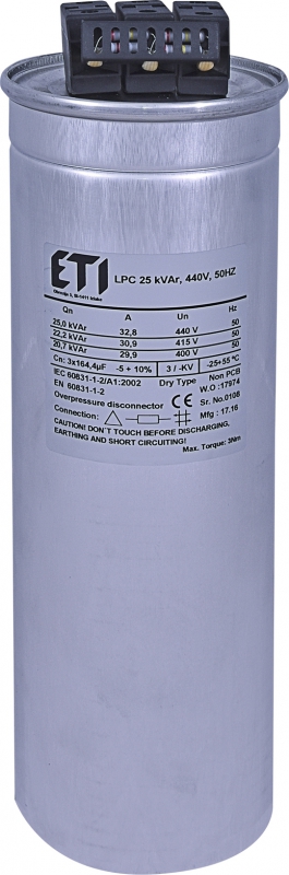 ETI Конденсаторная батарея LPC 25kVAr (440V) (арт.4656764) (4656764): цена, характеристики, отзывы, фото, инструкция - купить Конденсаторы 4656764 в Москве оптом