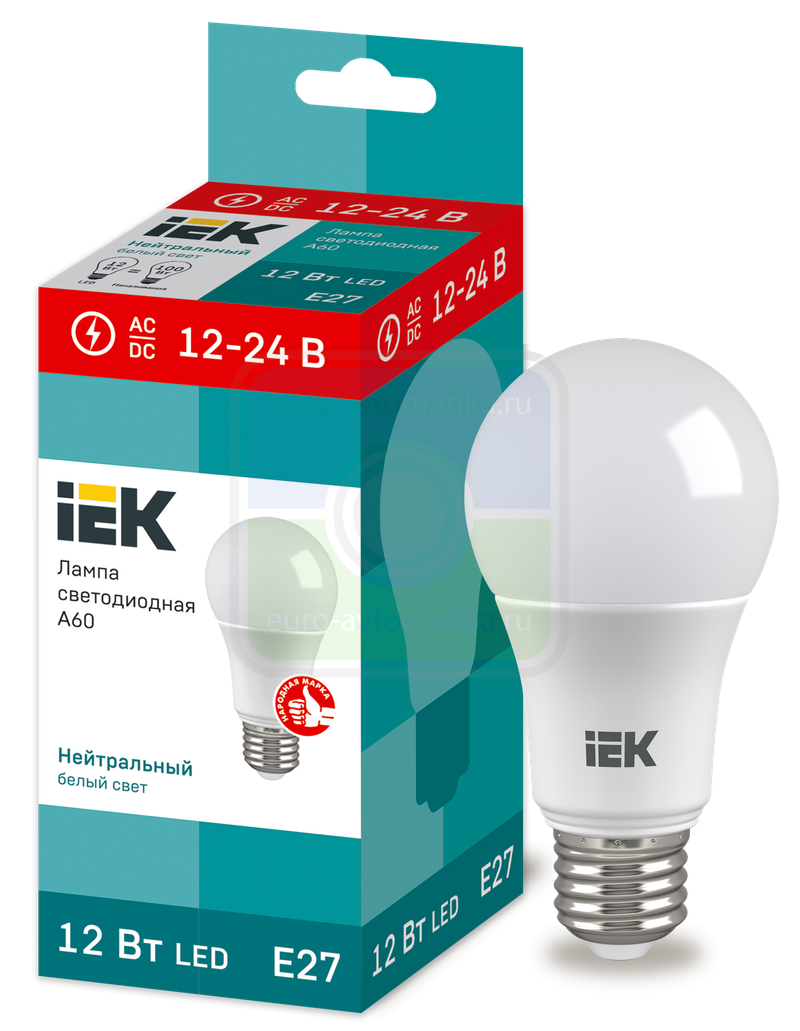 Лампа LED A60 груша 12Вт 12-24В 4000К E27 IEK применяется в сетях 12-24 или 24-48В постоянного и переменного тока, в помещениях с повышенной влажностью, а также низковольтных системах резервного освещения.
