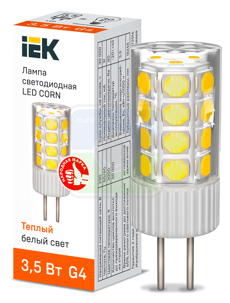 Светодиодная капсульная лампа LED CORN капсула 3,5Вт 230В 3000К керамика G4 IEK является заменой капсульных галогенных ламп соответствующего цоколя и используются как для основного освещения жилых и коммерческих помещений, так и для точечной и акцентной подсветки.