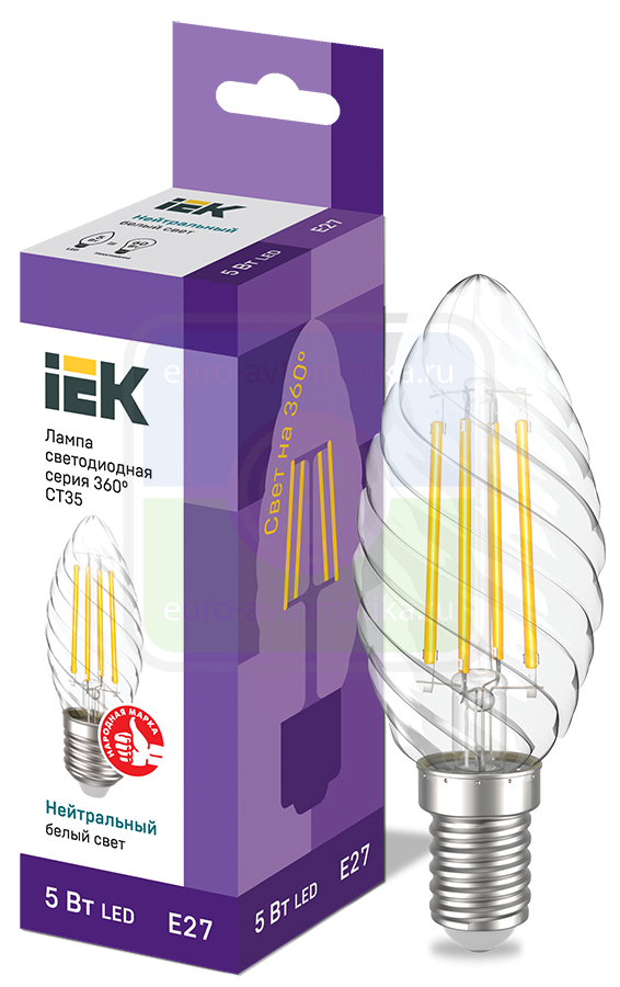 Лампа LED CT35 свеча вит. 5Вт 230В 4000К E27 серия 360° IEK с нитевидным светодиодом (филаментная нить) является одним из самых эффективных источников света.