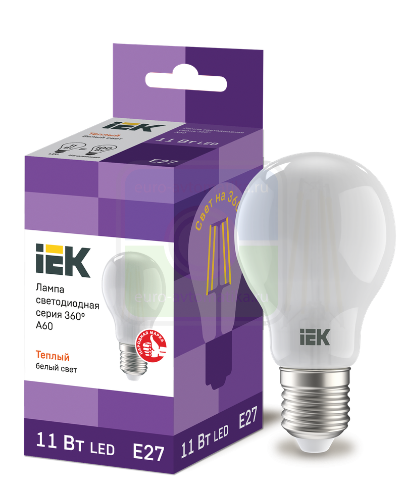Лампа LED A60 груша матов. 11Вт 230В 3000К E27 серия 360° IEK с нитевидным светодиодом (филаментная нить) является одним из самых эффективных источников света.