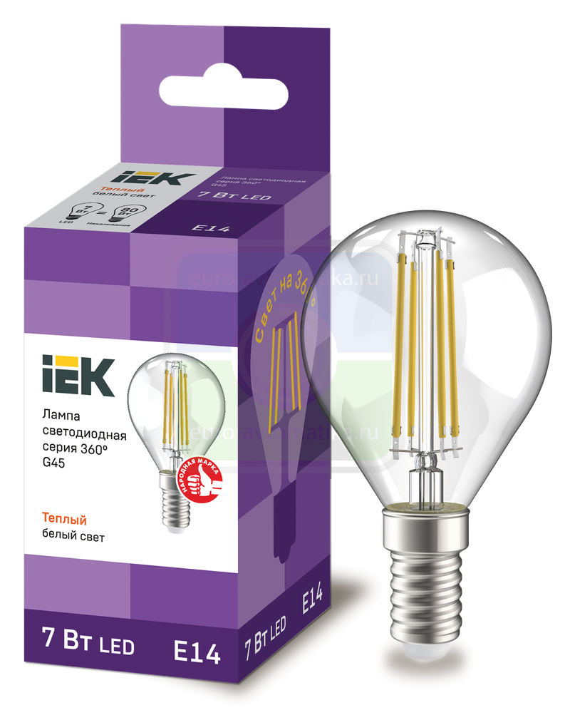 Лампа LED G45 шар прозр. 7Вт 230В 3000К E14 серия 360° IEK с нитевидным светодиодом (филаментная нить) является одним из самых эффективных источников света.