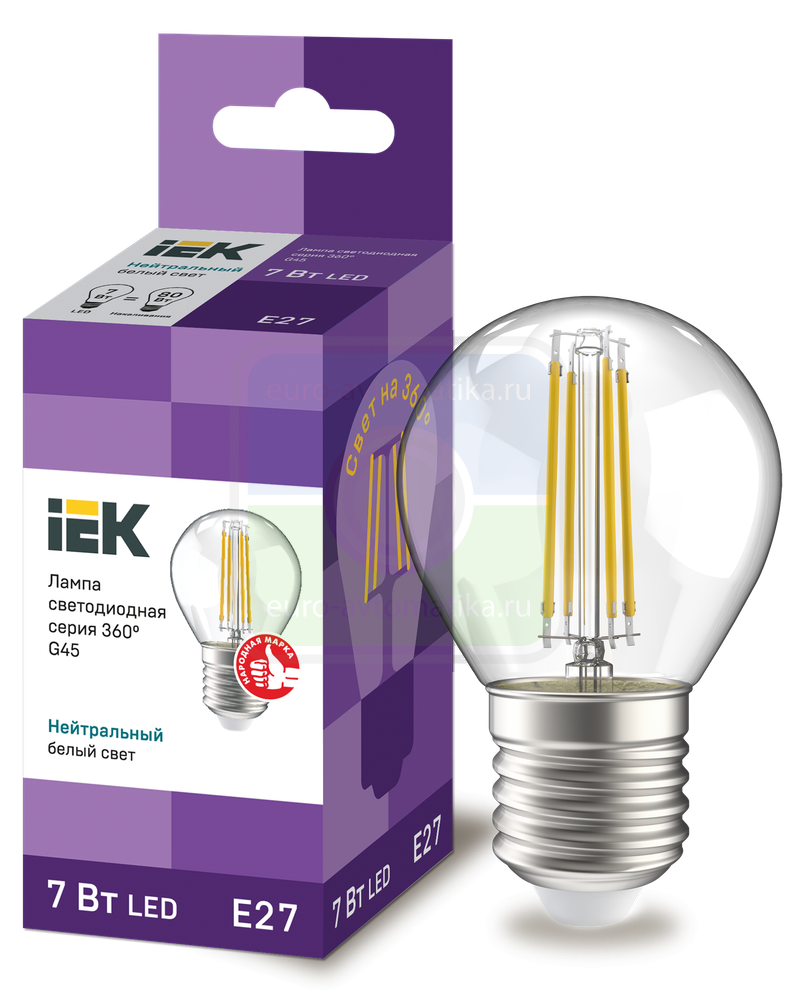 Лампа LED G45 шар прозр. 7Вт 230В 4000К E27 серия 360° IEK с нитевидным светодиодом (филаментная нить) является одним из самых эффективных источников света.