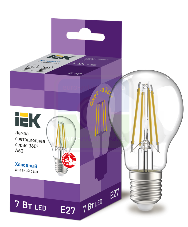 Лампа LED A60 груша прозр. 7Вт 230В 6500К E27 серия 360° IEK с нитевидным светодиодом (филаментная нить) является одним из самых эффективных источников света.