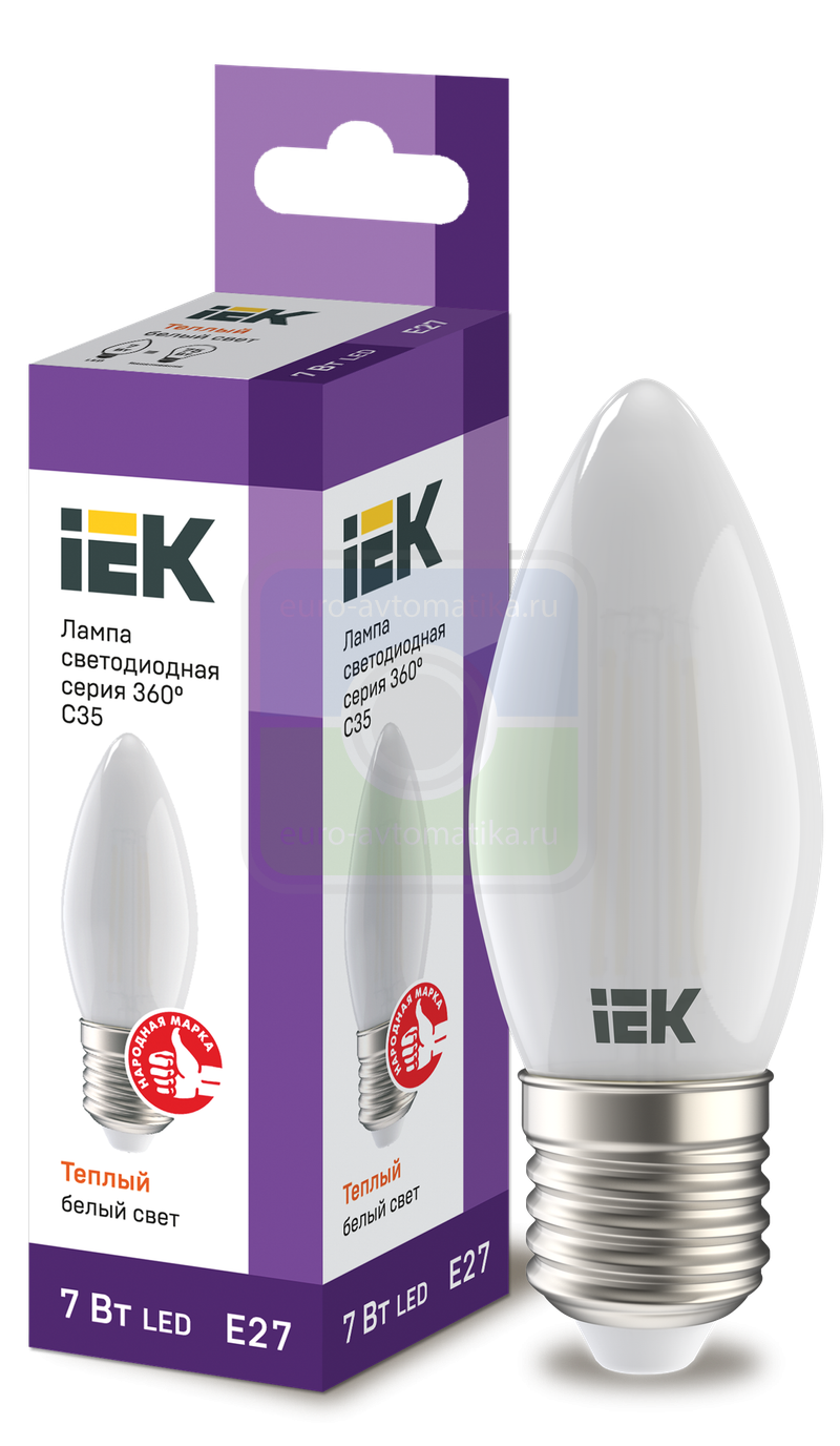 Лампа LED C35 свеча матов. 7Вт 230В 3000К E27 серия 360° IEK с нитевидным светодиодом (филаментная нить) является одним из самых эффективных источников света.