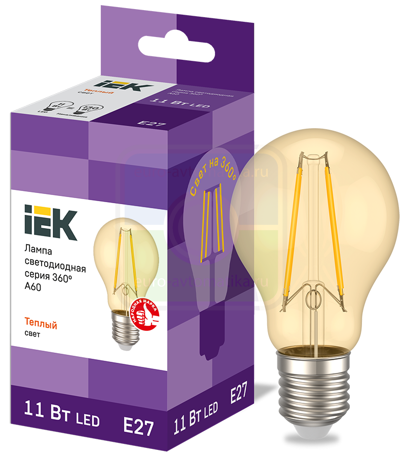Лампа LED A60 груша золото 11Вт 230В 2700К E27 серия 360° IEK с нитевидным светодиодом (филаментная нить) является одним из самых эффективных источников света.