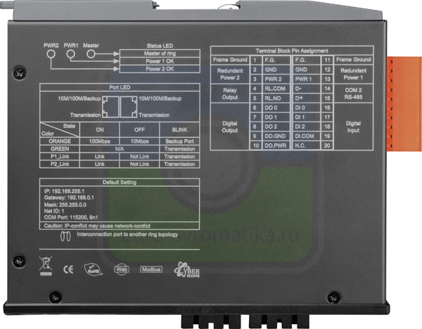 COM 2 | RS-485 (D2+, D2-), автоматическая настройка скорости, без изоляции |
