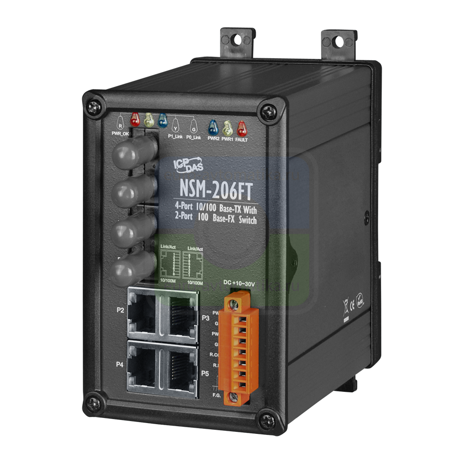 Коммутатор 4 x 10/100BaseTX, 2 x 10/100BaseFX, многомод, разъем ST, металлический корпус