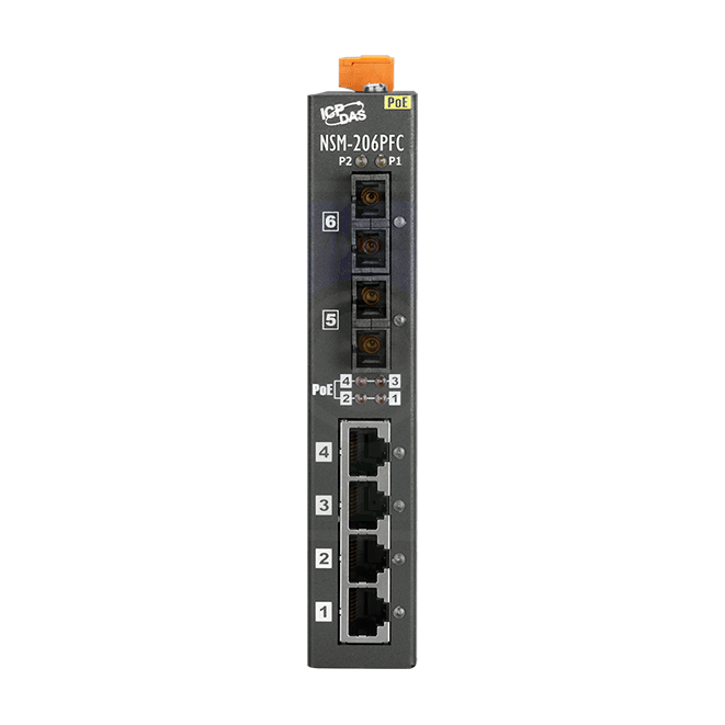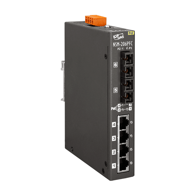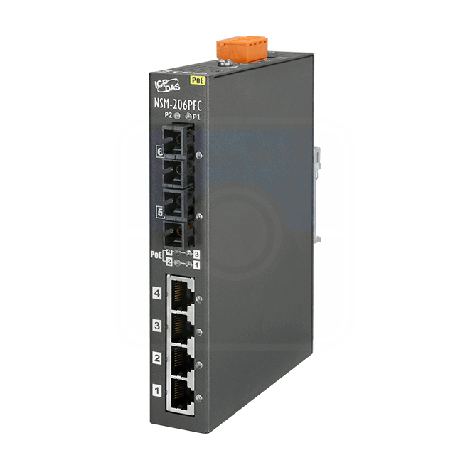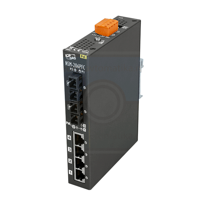 Коммутатор 4 x PoE 10/100BaseTX, многомод, 2 оптических порта, разъем SC, металлический корпус