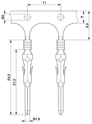 Обжимной контакт, диаметр контакта: 1,6 мм, катанные, Штифт, материал контакта: Медный сплав, никелированный, поверхность контакта: с серебряным покрытием, сечение проводников: 0,34 мм² ... 1 мм² AWG 22 ... 17