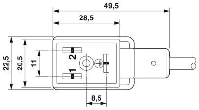 Кабель для датчика / исполнительного элемента, 3-полюсн., PUR без галогенов, темно-серый RAL 7021, свободный конец, к Штекер типа BI для электромагнитного клапана (11 мм), с 1 светодиод, подключение с помощью Защитный диод, длина кабеля: 1,5 м, с реле тока удержания для понижения расхода электроэнергии
