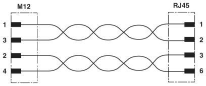 Сетевой кабель, Ethernet CAT5 (100 Мбит/с), 4-полюсн., PUR, цвет морской воды RAL 5021, экранирован., Штекеры прямое M12 / IP67, механические ключи: D, к Штекеры прямое RJ45 / IP20, длина кабеля: 0,5 м