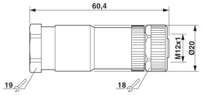 | Указание | Снять оболочку с проводника на участке длиной 22 мм, снять изоляцию с жил на длину 7 мм, обжать гильзу, затем укоротить ее на 5 мм. Длина жилы с укороченным кабельным наконечником составляет 20 мм. Подсоединить жилы и затянуть крепежные винты с усилием 0,2 Нм. |