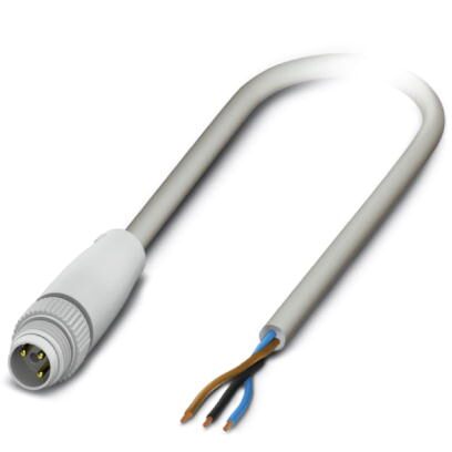 Кабель для датчика / исполнительного элемента, 3-полюсн., PP-EPDM без галогенов, серый RAL 7035, Штекеры прямое M8, к свободный конец, длина кабеля: 3 м, Гигиеничный дизайн, с пластмассовой накатанной гайкой