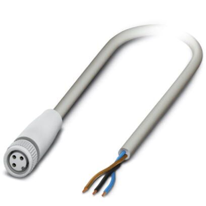 Кабель для датчика / исполнительного элемента, 3-полюсн., PP-EPDM без галогенов, серый RAL 7035, свободный конец, к Гнездо прямое M8, длина кабеля: 10 м, Гигиеничный дизайн, с пластмассовой накатанной гайкой