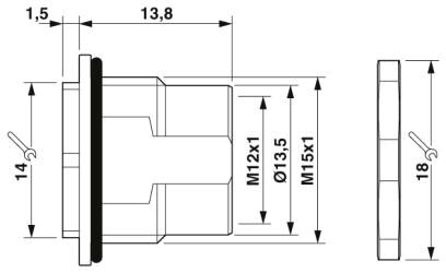 | Тип монтажа | Монтаж с внутренней стороны M15 x 1 Расстояние между верхним краем печатной платы и задней частью передней панели: 6 мм |