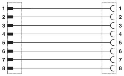 Кабель для датчика / исполнительного элемента, 8-полюсн., ПВХ, черный RAL 9005, Штекеры прямое M12, А-кодирование, к Гнездо угловой M12, А-кодирование, длина кабеля: 3 м