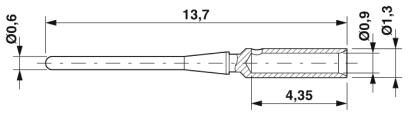 Обжимной контакт, диаметр контакта: 0,6 мм, с разворотом, Штифт, материал контакта: CuZn, поверхность контакта: Ni/Au, сечение проводников: 0,14 мм² ... 0,34 мм² AWG 26 ... 22