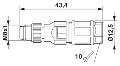 Соединитель для датчика/исполнительного устройства, 4-полюсн., Штекеры прямое M8, А-кодирование, Клеммы с ножевыми контактами, материал накатанной гайки: латунь, никелированный, наружный диаметр кабеля 2,5 мм ... 5 мм