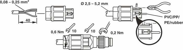 | Сечение провода | 0,08 мм² ... 0,25 мм² |