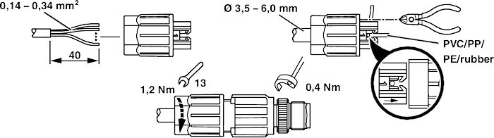 | Сечение провода | 0,14 мм² ... 0,34 мм² |
