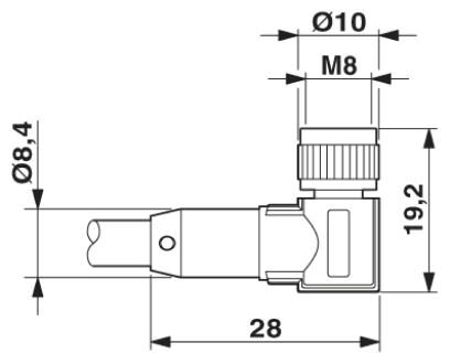 Кабель для датчика / исполнительного элемента, 4-полюсн., PUR без галогенов, темно-серый RAL 7021, Штекеры прямое M12 SPEEDCON, А-кодирование, к Гнездо угловой M8, А-кодирование, с 2 светодиодных, длина кабеля: 0,6 м