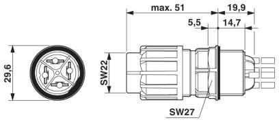 Проходная деталь, Тип подключения QUICKON, полюсов: 3+PE, 1 мм² ... 2,5 мм², 690 В, 20 A, черный, без гайки QUICKON, диапазон диаметра кабеля: 6 мм ... 14 мм, монтажная резьба: M25, отдельные жилы (приварен), 2,5 мм², жилы ровно обрезаны, длина кабеля: 0,5 м