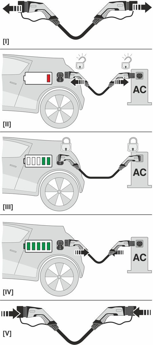 | Тип изделия | Мобильный зарядный кабель перем. тока с автомобильным зарядным и инфраструктурным штекерами, с защитными колпачками |