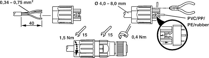 Температура окружающей среды (при эксплуатации) | -25 °C ... 80 °C (вилка / розетка) |