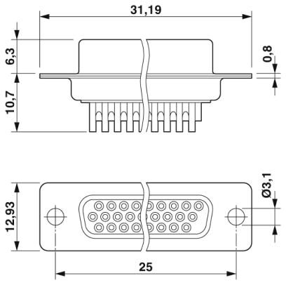 Контактная вставка D-SUB, размер корпуса 1, с 15 контактами для сигнальных цепей, гнездовые контакты, с лепестком под пайку, прямая, для крепления предусмотрены отверстия 3 мм, для монтажных рам VS-09-...