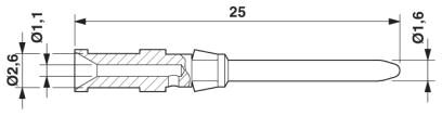 Механически обработанный обжимной контакт 1,6er, штыревой, отдельный, сечение 0,75 мм², с покрытием серебром