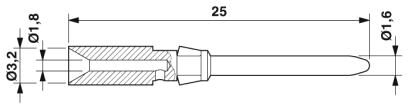 Механически обработанный обжимной контакт 1,6er, штыревой, отдельный, сечение 1,5 мм², с покрытием серебром