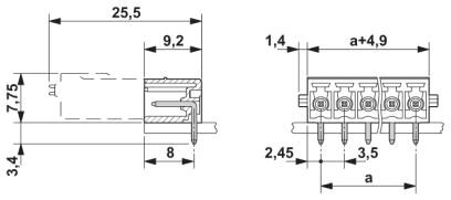 Корпусная часть для печатных плат, номинальный ток: 8 A, расчетное напряжение (III/2): 160 В, полюсов: 8, размер шага: 3,5 мм, цвет: зеленый, поверхность контакта: олово, монтаж: Пайка волной припоя
