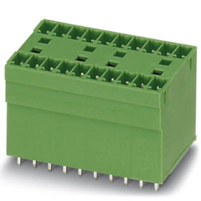 Корпусная часть для печатных плат, номинальный ток: 8 A, расчетное напряжение (III/2): 160 В, полюсов: 5, размер шага: 3,81 мм, цвет: зеленый, поверхность контакта: олово, монтаж: Пайка волной припоя, Вместе со штекерными разъемами MCV используются штекеры MCVW или MCVR.