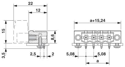 Корпусная часть для печатных плат, номинальный ток: 16 A, расчетное напряжение (III/2): 320 В, полюсов: 5, размер шага: 5,08 мм, цвет: зеленый, поверхность контакта: олово, монтаж: Пайка волной припоя