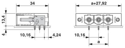 Корпусная часть для печатных плат, номинальный ток: 76 A, расчетное напряжение (III/2): 1000 В, полюсов: 2, размер шага: 10,16 мм, цвет: зеленый, поверхность контакта: Серебро, монтаж: Пайка волной припоя