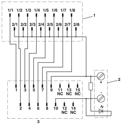 Адаптер V8 для 8 x PLC-INTERFACE (6,2 мм), yправление: Системная кабельная разводка входных плат ПЛК, Подключение 1: Винтовые зажимы 1x, Подключение 2: Гнездовая контактная часть разъема D-SUB 1x 15-полюсн., Подключение 3: Штекерное подключение (возможна установка на 8 клеммах PLC-INTERFACE), количество каналов: 8, логич. схемы управления: подключение к положительному полюсу