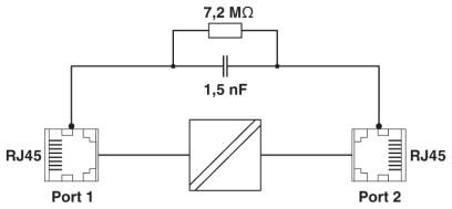 Пассивный сетевой изолятор для гальванической развязки в линиях передачи данных Ethernet. Предназначен для защиты оборудования Ethernet от разностей потенциалов до 4 кВ. Возможно применение для скоростей передачи до 1 ГБит/с. Возможность подсоединения для двух штекеров RJ45.