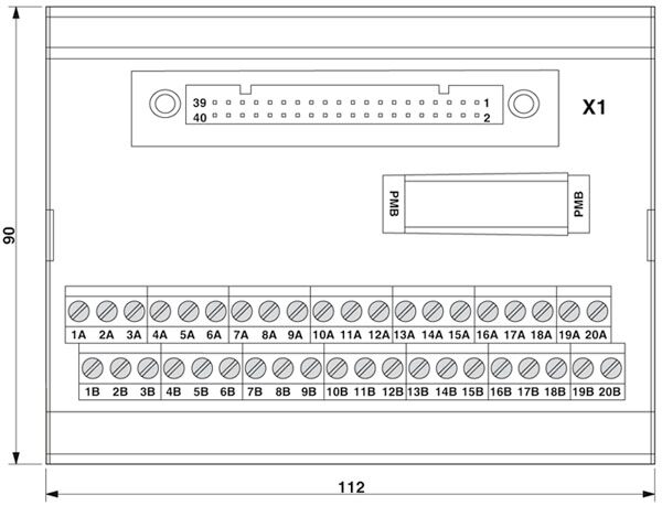Универсальный интерфейсный модуль с соединением по схеме 1:1 между 40-контактным системным разъемом и винтовыми клеммами.
